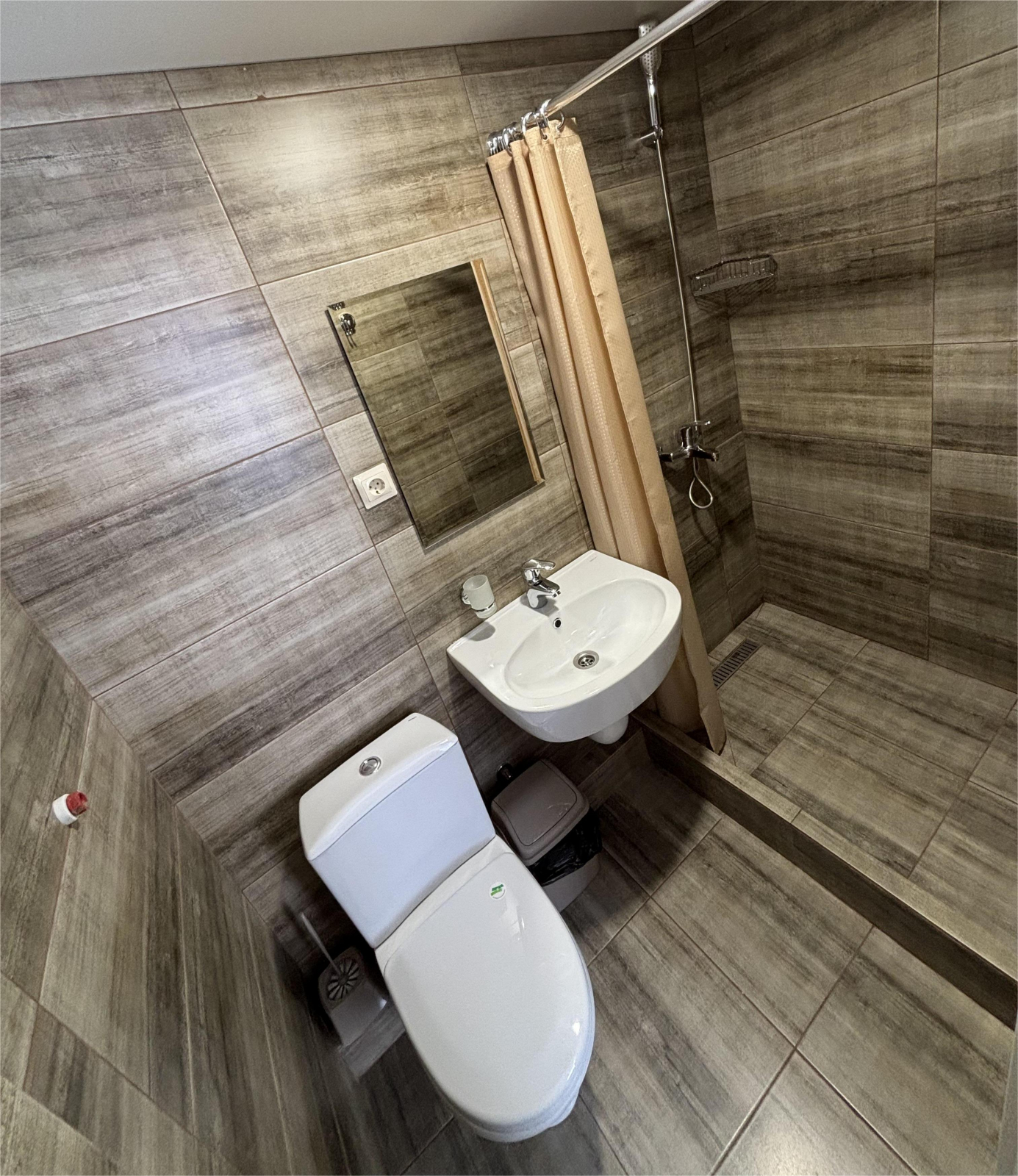 Площадь номера - 17 кв.м. 2 осн. места. 1 доп. место. Мебель: вешалка, зеркало, кровать двуспальная, прикроватные тумбочки, стол, стул, шкаф. Оборудование: кондиционер, набор посуды, сейф, телевизор, холодильник. Санузел: с душем, туалетные принадлежности. Сервис: Wi-Fi бесплатно, смена полотенец, смена постельного белья, уборка номера.